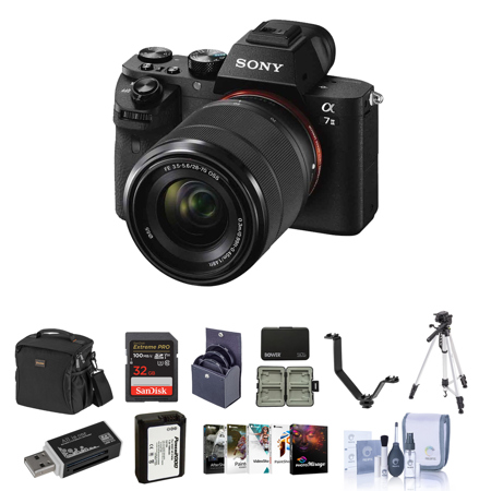 About sony alpha a7 ii. Lens compatibility sony e mount lenses sensor type 35 mm full frame 35 8 23 9. Sony alpha a7ii full frame mirrorless digital camera with 28 70mm lens bundle with camera bag battery filter kit tripod pc software kit 32gb sd card sd case 3 shoe v bracket cleaning kit.